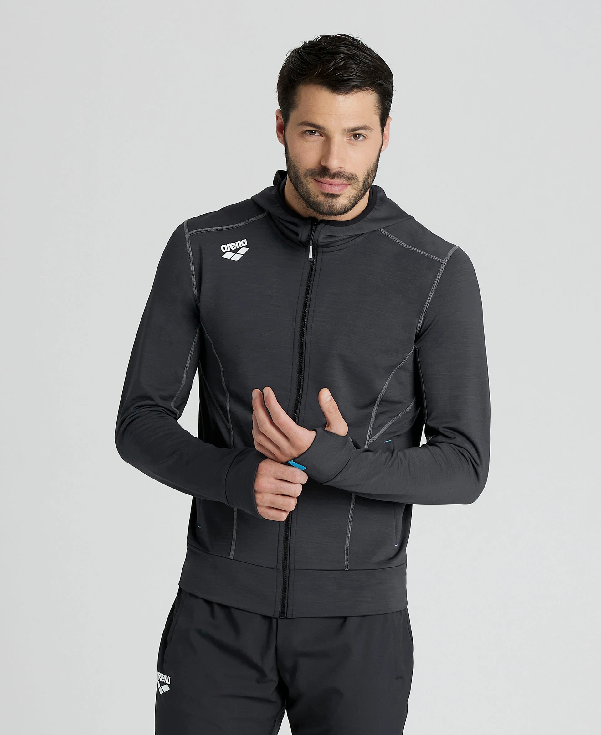 Dotato di tasche laterali con zip per tenere sempre al sicuro le tue chiavi o il telefono, il design è caratterizzato da eleganti cuciture a contrasto e un logo sul retro. Per una vestibilità più comoda, indossa il cappuccio e inserisci i pollici nelle comode aperture sui polsini.