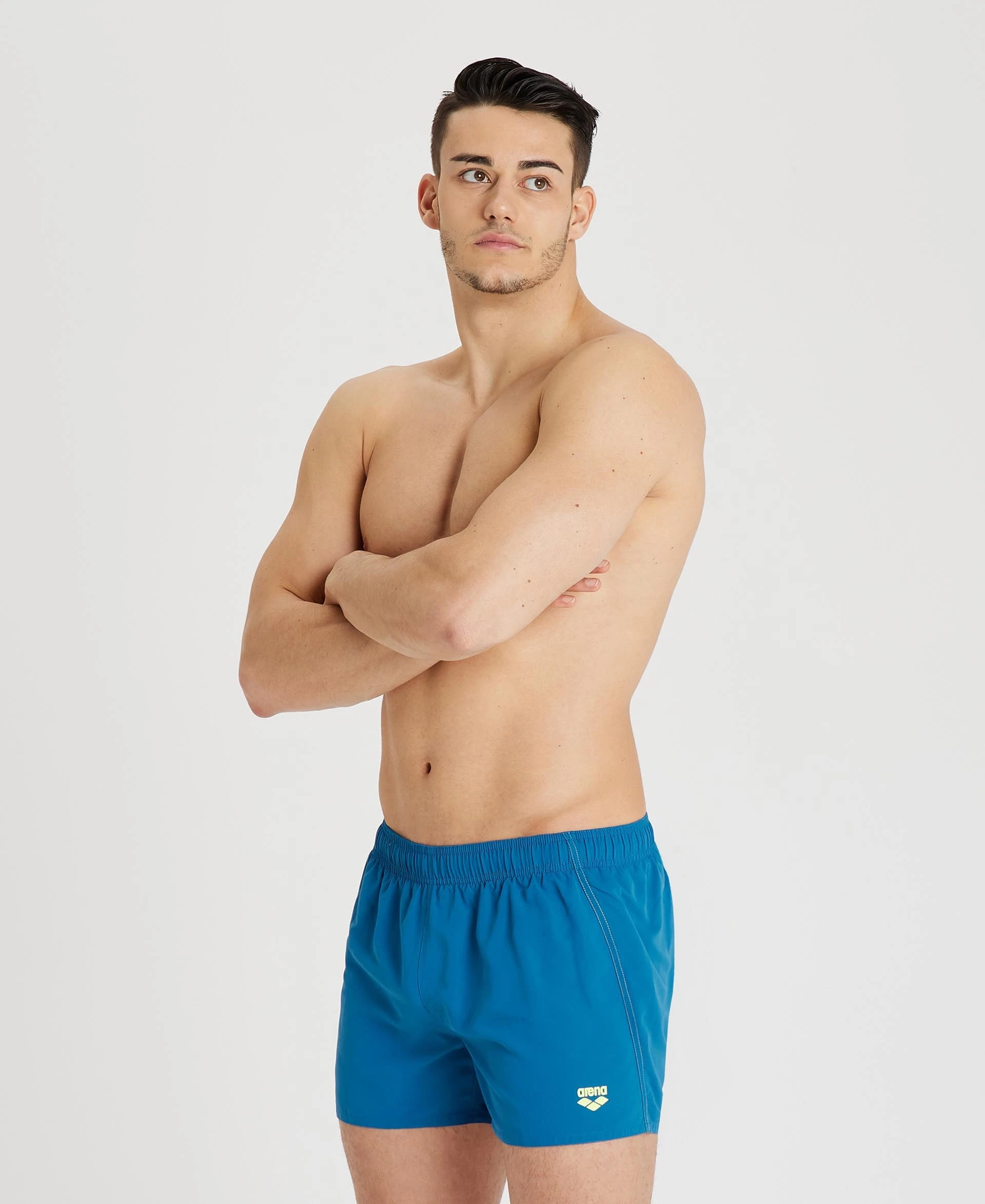 Questo costume da bagno maschile ha una lunghezza di 32 cm ed è dotato di slip interni in maglia per un sostegno extra. Ha una tasca posteriore con una linguetta in velcro e un occhiello di drenaggio. Potete adattarne la vestibilità stringendo la coulisse interna.